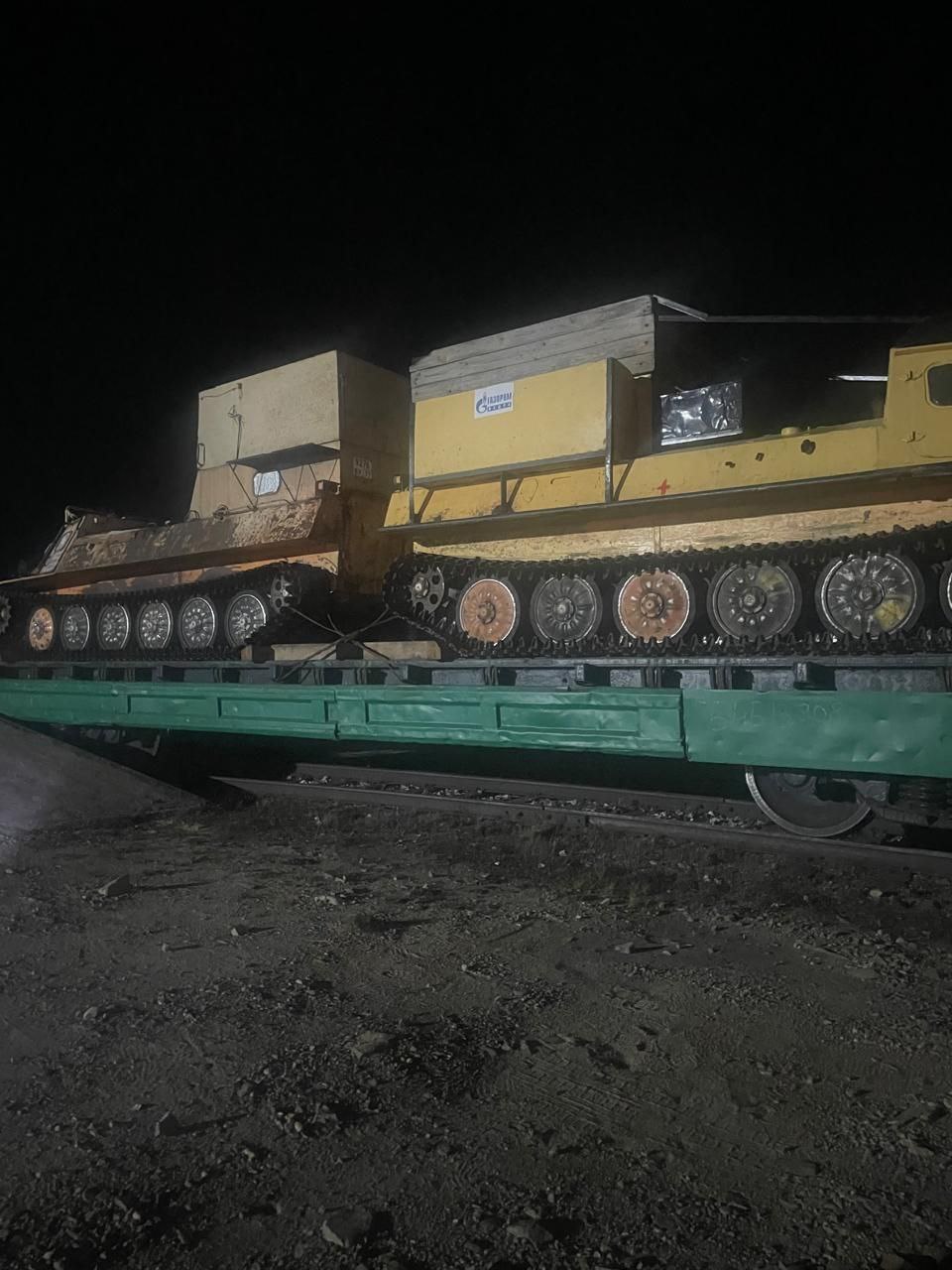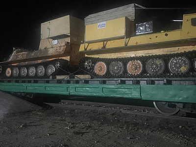 Гусеничные вездеходы были тщательно очищены от грязи, проведен их осмотр, а гусеницы дополнительно зафиксированы для предотвращения смещения во время движения.Погрузка и крепление: Погрузка на платформы была проведена с использованием специализированной техники.
