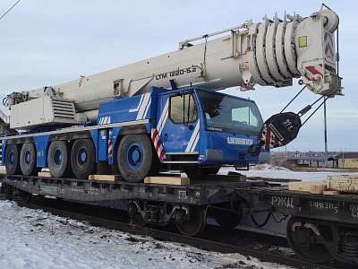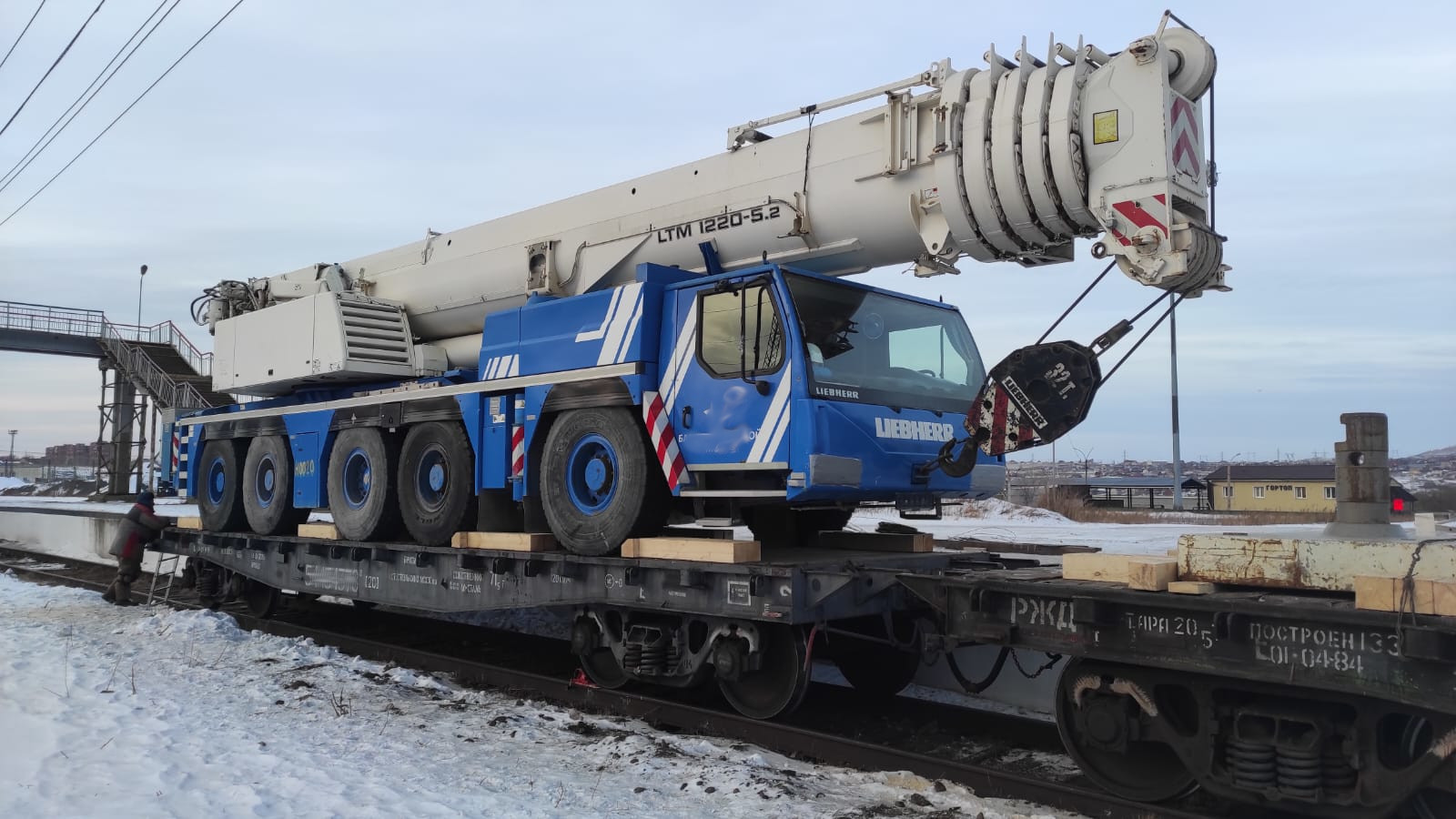 ООО ЦЖТН организовало полный цикл перевозки автокрана Liebherr LTM 1220-5 из точки А до точки Б по маршруту: Красноярск - ст. Тайшет → ст. Окусикан (Восточно-Сибирская ЖД).